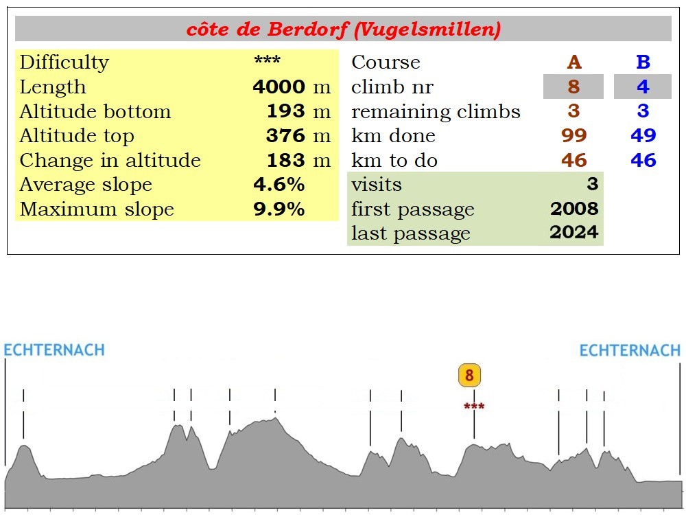 Just like in the past, La Charly Gaul 2025 offers two courses to the participants, with a common start like in 2024. The longest loop has a total of 149 kilometers with 11 climbs and about 2.000 meters of change in altitude. The shorter course counts 99 kilometers, containing 7 climbs with a total of around 1.250 meters change in altitude.